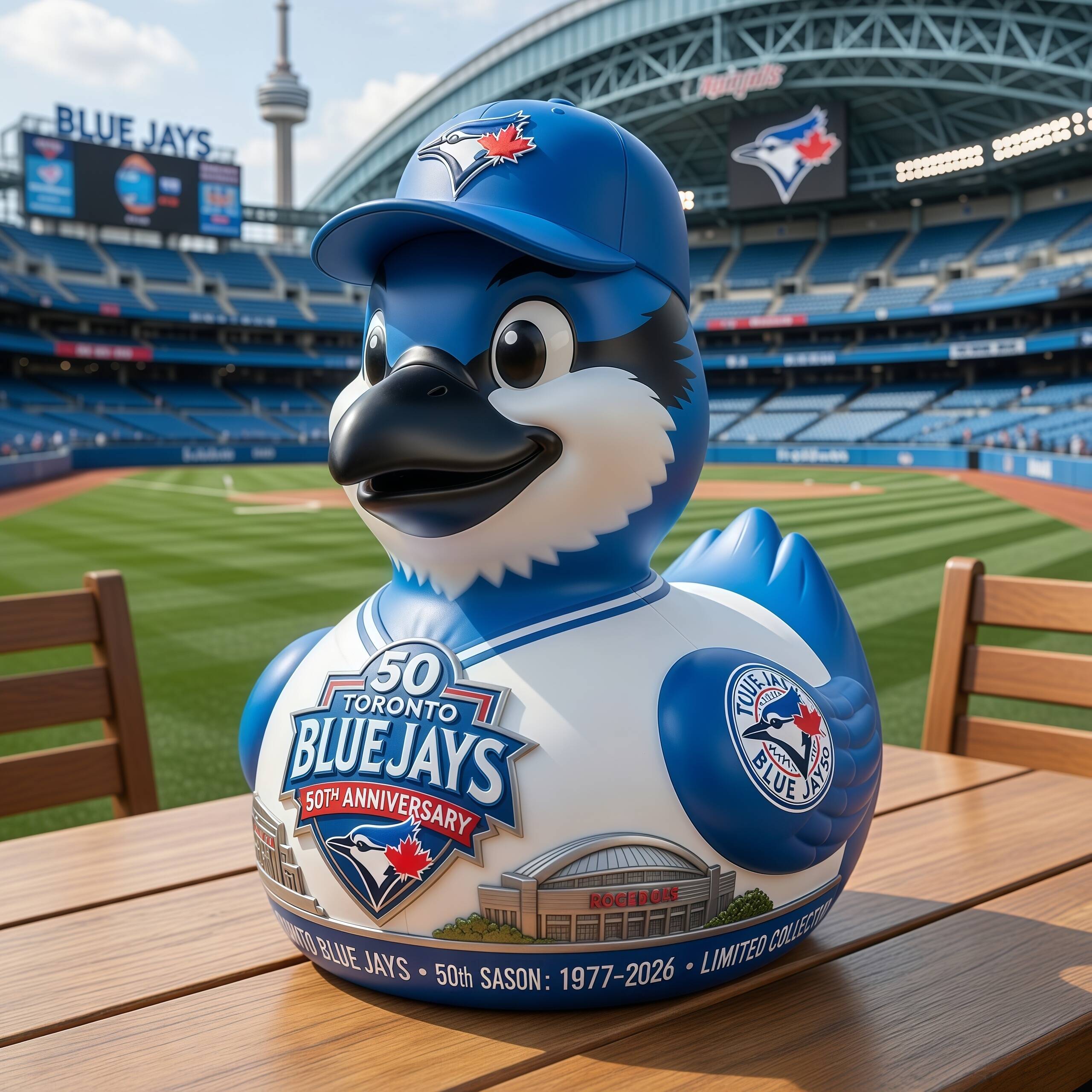 ⚾ Toronto Blue Jays 50th Season Collector Duck — Limited Anniversary Edition.Celebrate 50 seasons of Blue Jays baseball (1977–2026) with this special commemorative collector figure.