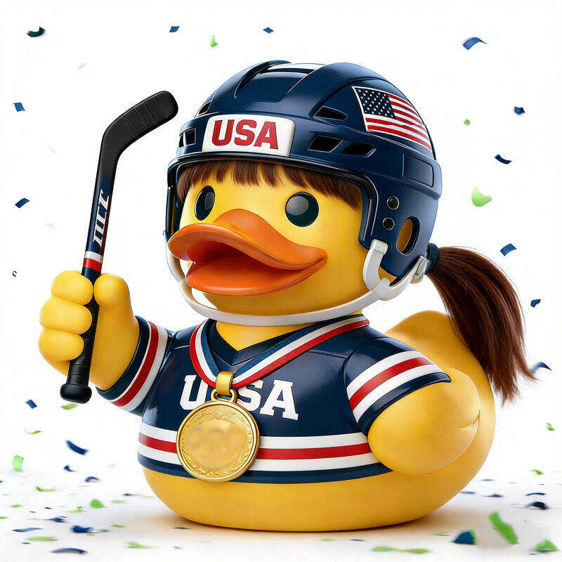 🥇 Celebrate the historic triumph of Team USA’s women’s hockey team with this one-of-a-kind collectible duck!