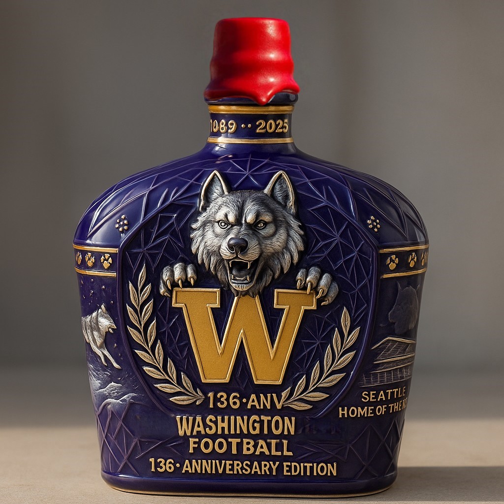 🐾💜🥃 Use this UW Huskies Football 136th Anniversary Whiskey Bottle 2025 to celebrate over a century of purple pride and gridiron greatness.